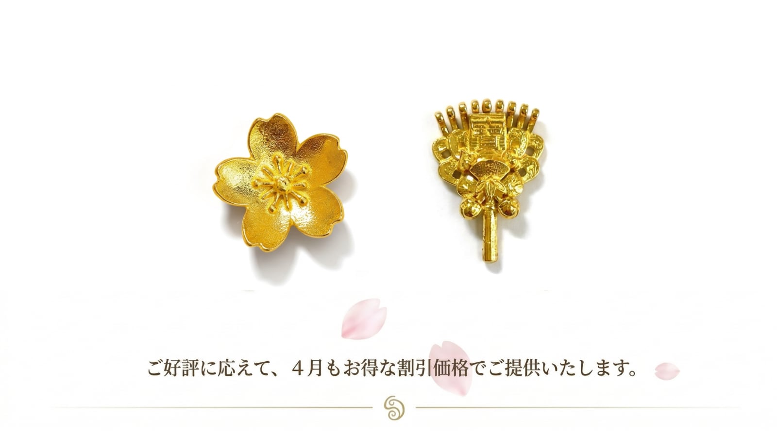 4月も純金アイテムをお得な割引価格でご案内しております。