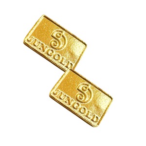 “JUNGOLD”のロゴが施された、かわいらしい1gの純金インゴット風プレートカードです。