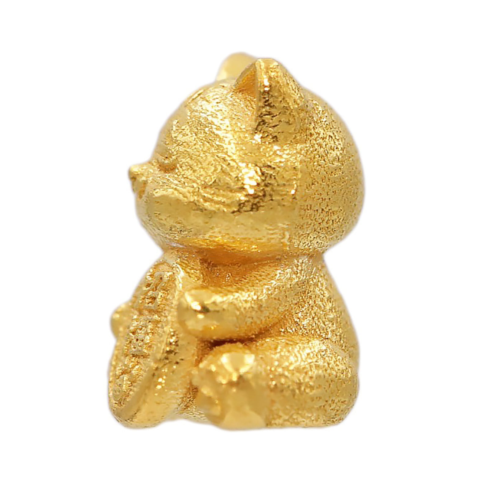 小判を抱いた猫の表情や肉球まで細かく表現。「招福」「開運」の文字もバッチリはいった指先サイズの純金アート。