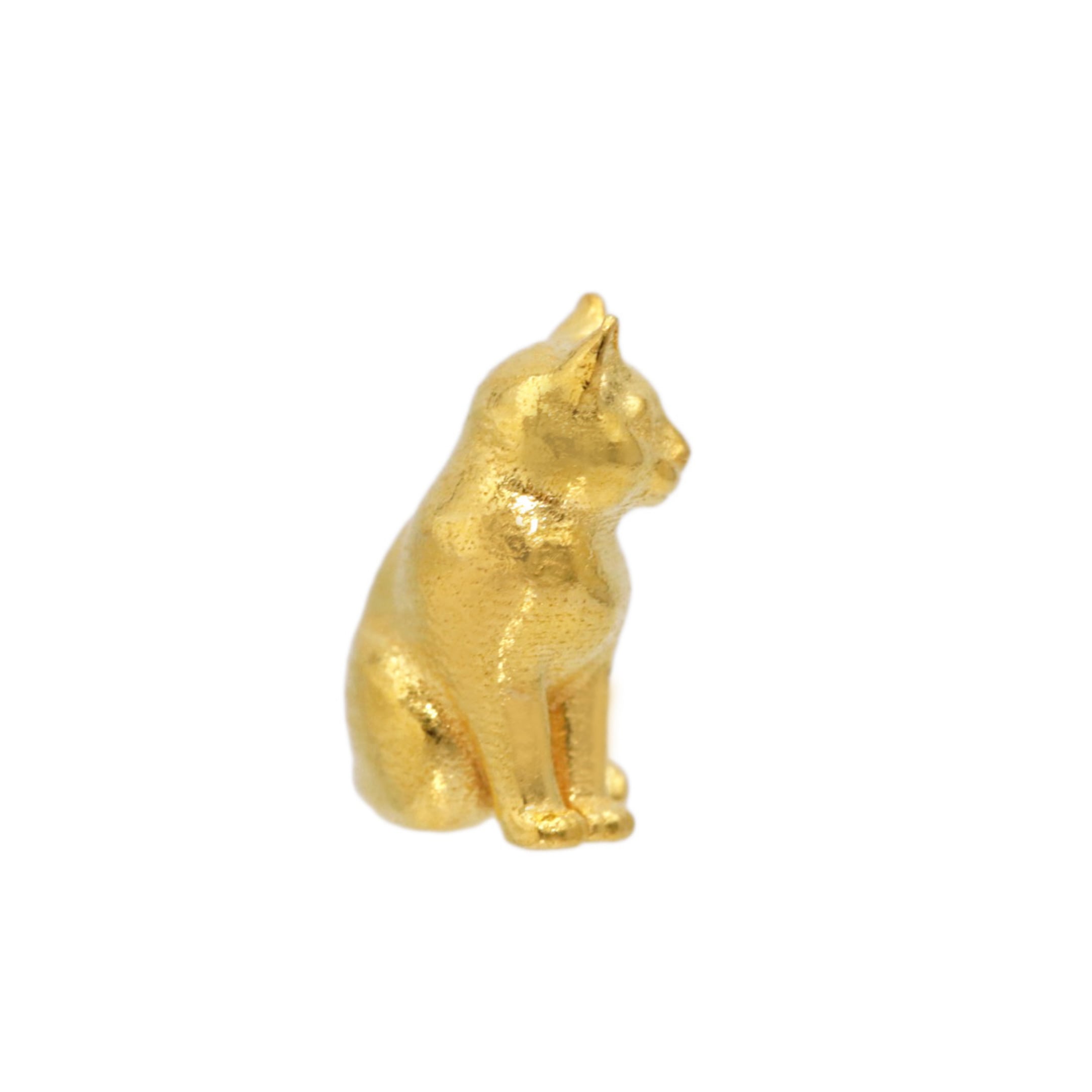 猫らしい優しい表情と凛とした目元を、純金の輝きで繊細に表現。