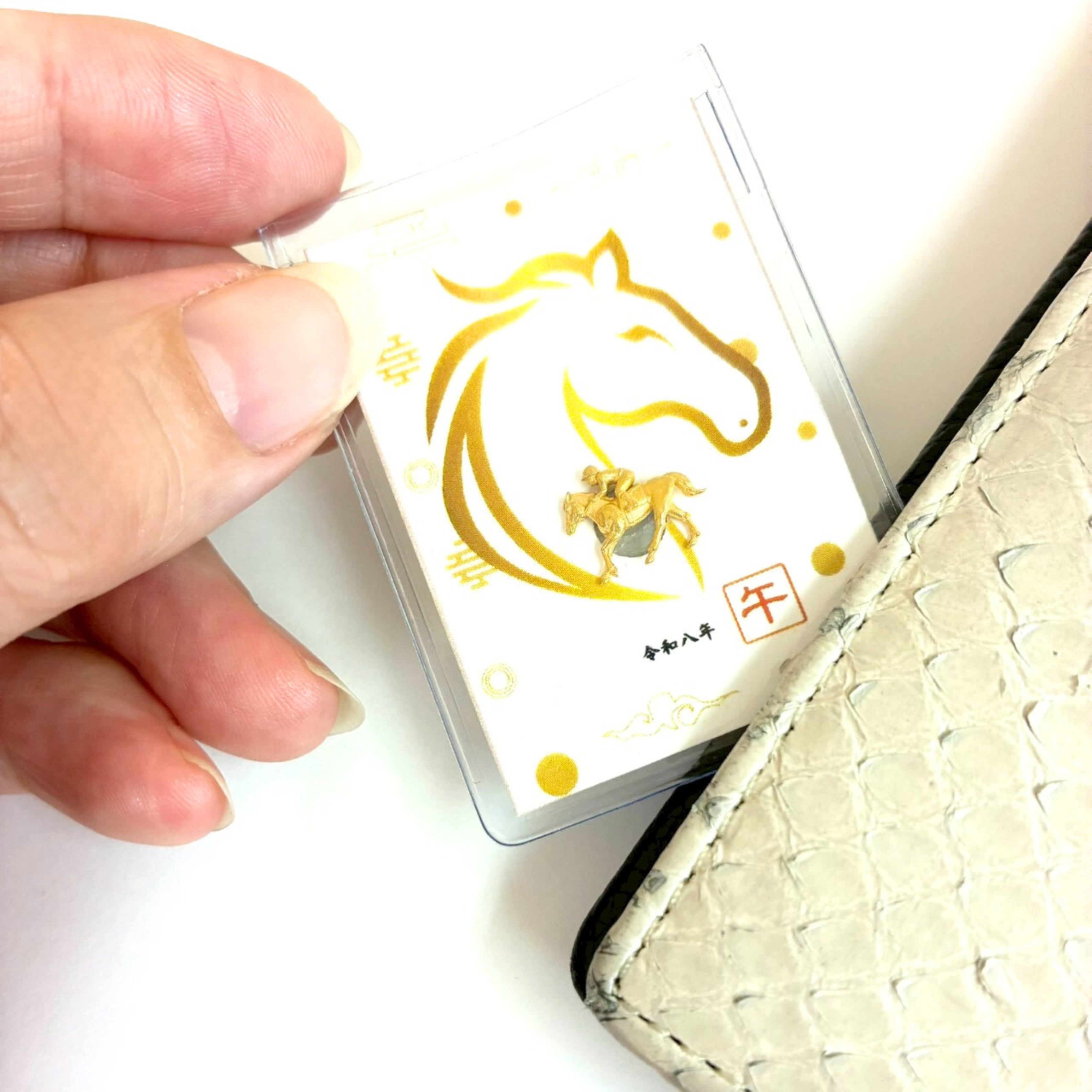 【超早割価格】【年内に届く】純金の午年のお守り「人馬一体」約0.3g。「令和八年」「干支シリーズ」。