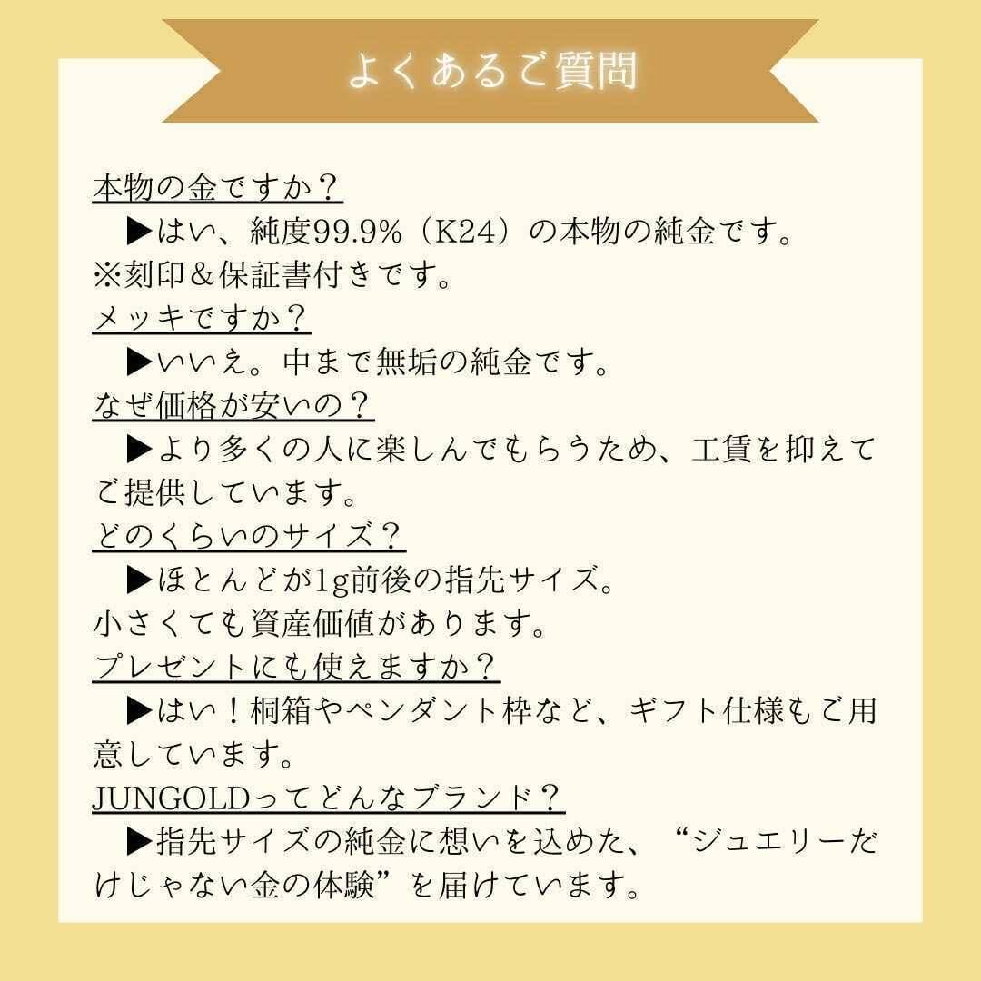 JUNGOLDの干支お守りは、指先サイズの小さな純金。