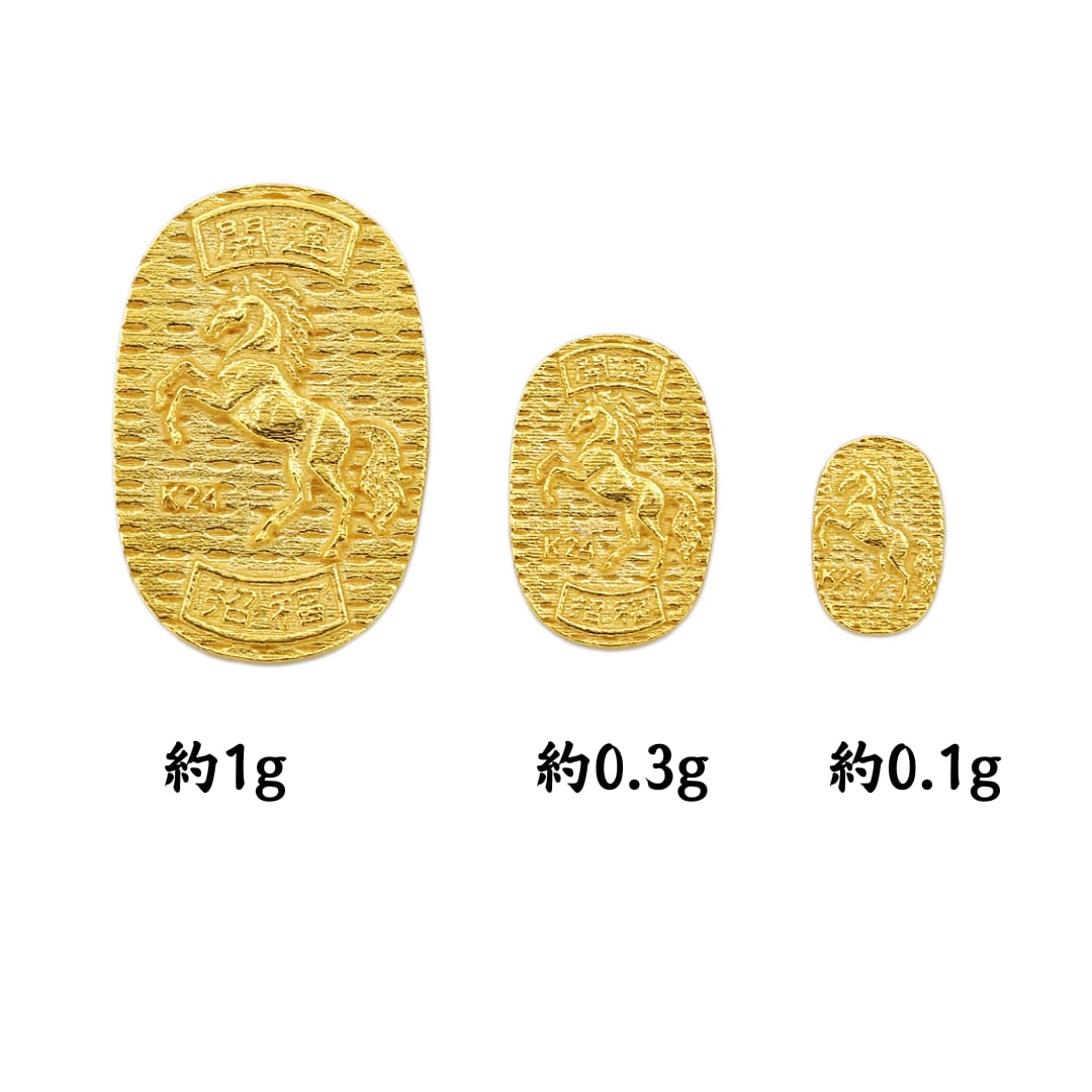 【超早割価格】純金の午年のお守り「小判 全身」約0.3g。「干支シリーズ」。