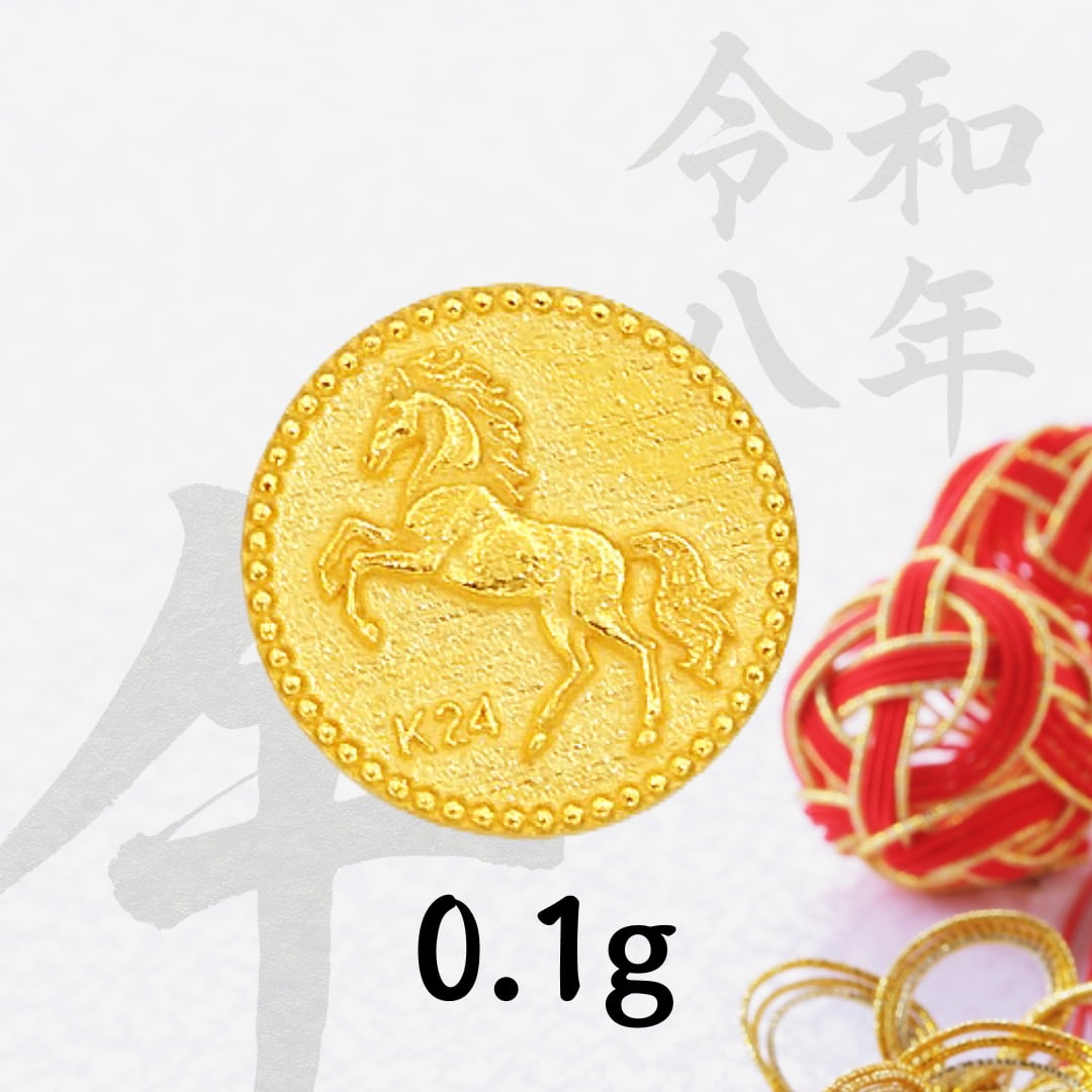 【超早割価格】純金の午年のお守り「コイン 全身」約0.1g。「令和八年」「干支シリーズ」。