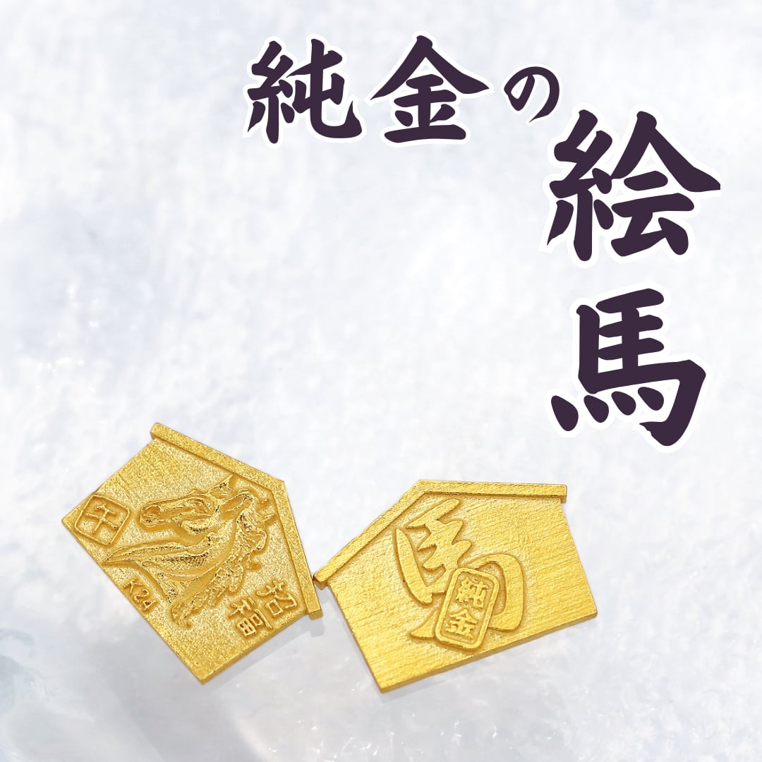【超早割価格】純金の午年のお守り「絵馬 顔」約0.3g。「令和八年」「干支シリーズ」。