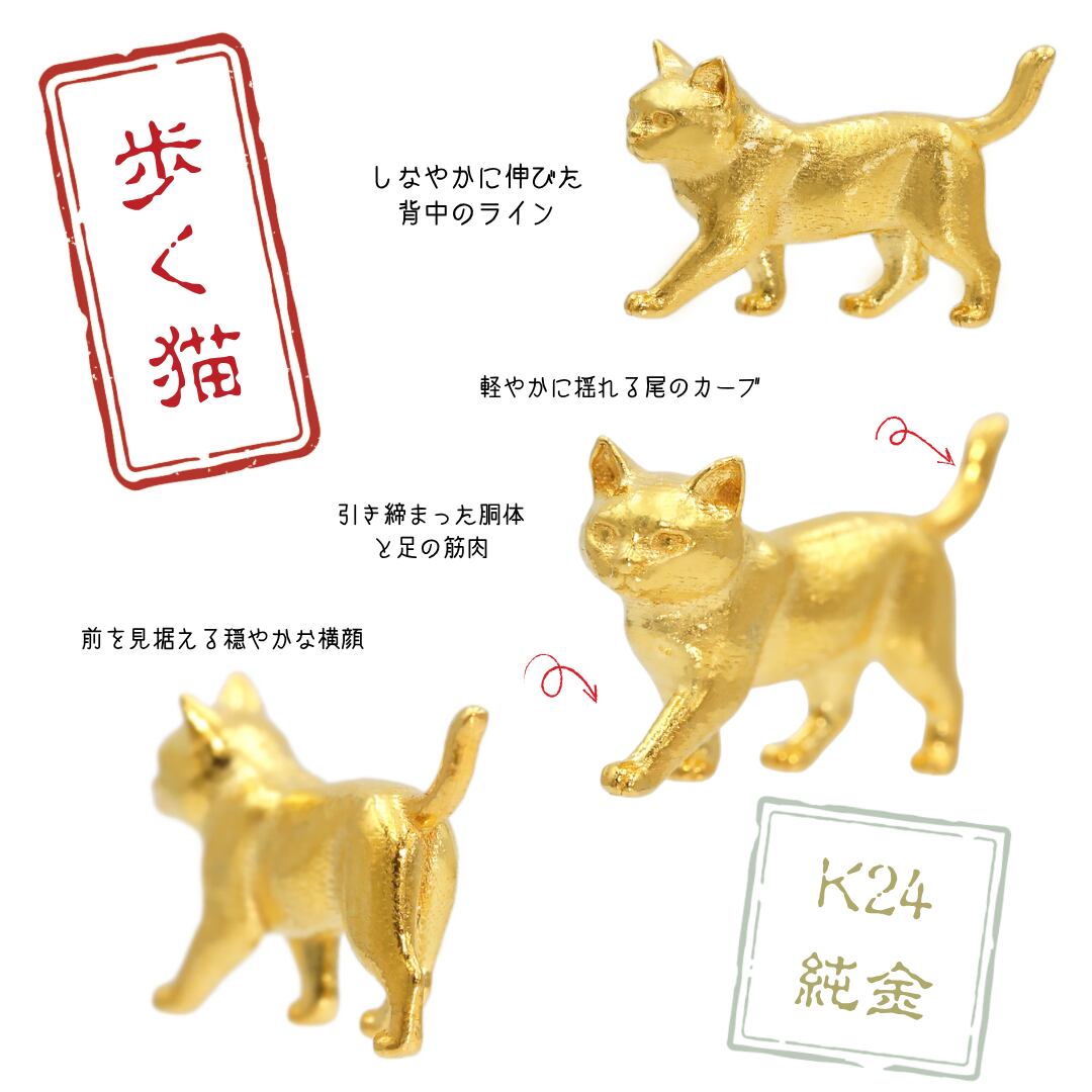優雅に歩く猫の姿をモチーフにした「純金の歩く猫」。