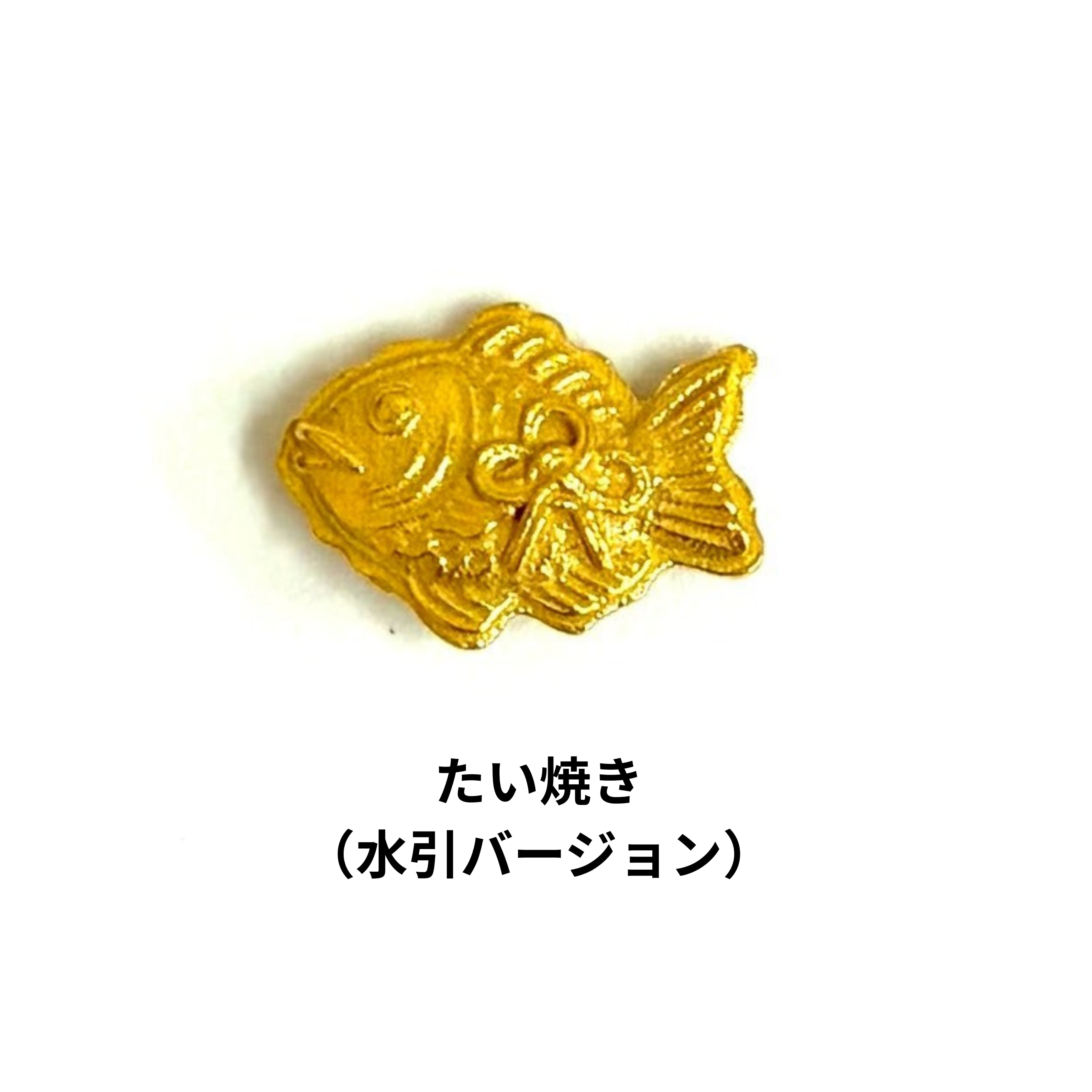 今回の純金モチーフは、たい焼きに 水引結び をあしらった特別仕様。