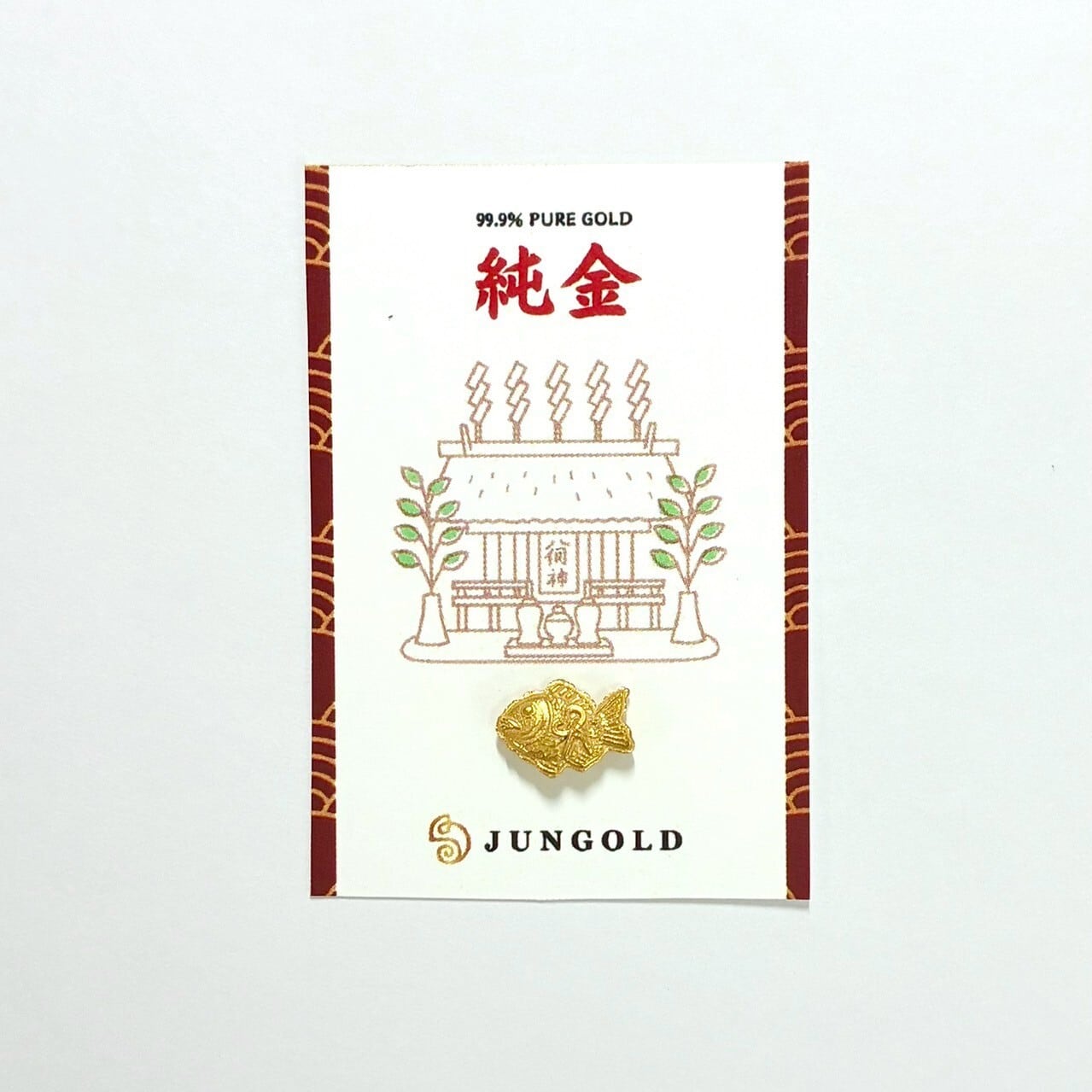 JUNGOLDの「純金の神棚シリーズ」は、純度99.9%の金を使用し、約1gという小さなサイズで神聖なモチーフを精巧に表現した特別なコレクションです。