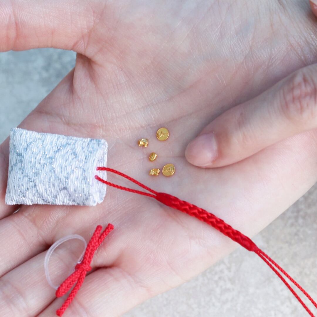 かわいいチビお守り袋も登場。本物の純金を大切に身に着けたり、飾れる体験。