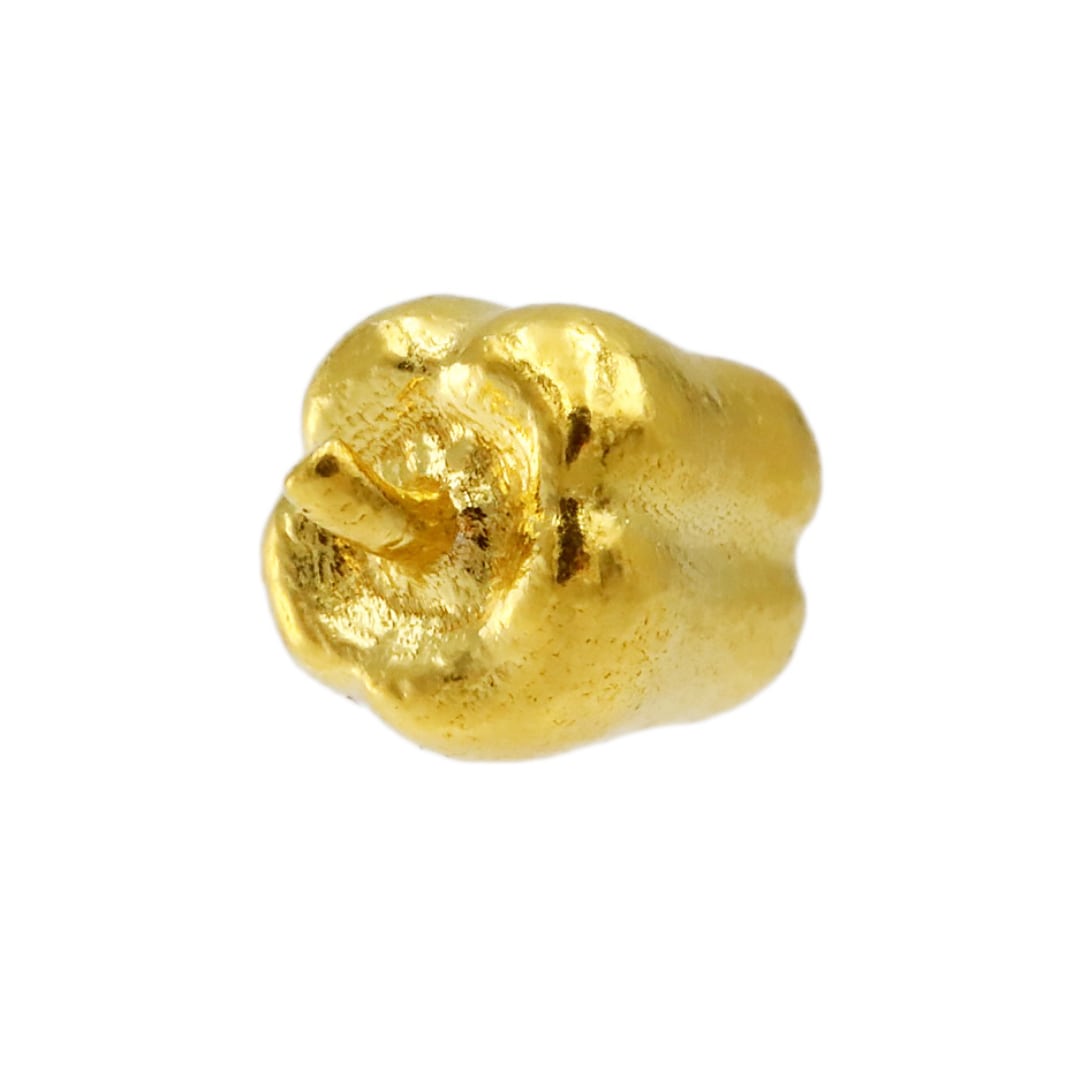 純金(K24)の光沢が、ピーマン特有のベル型フォルムと、凹凸のある表面を美しく際立たせます。