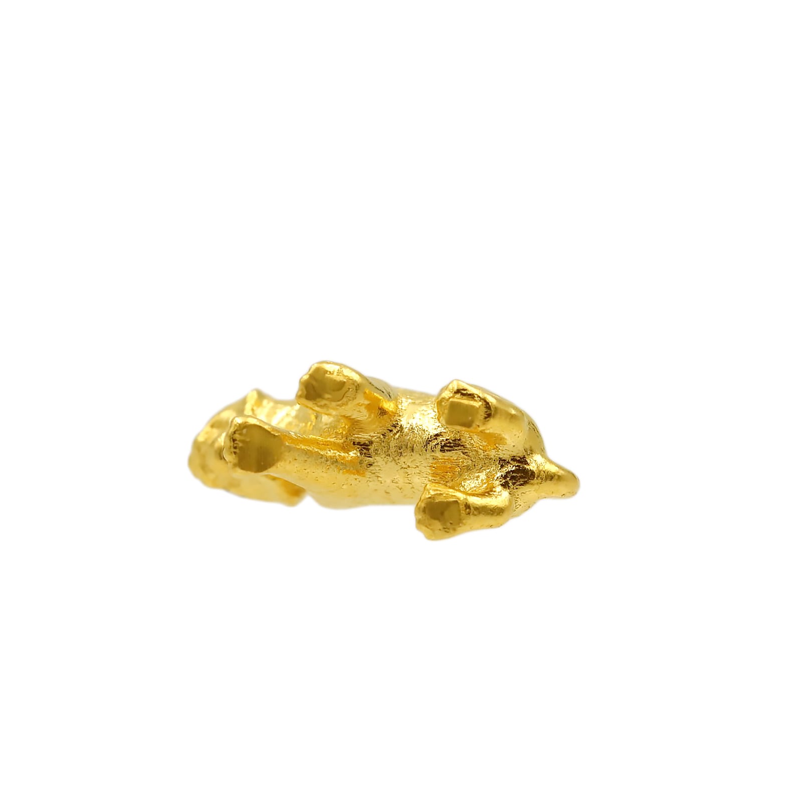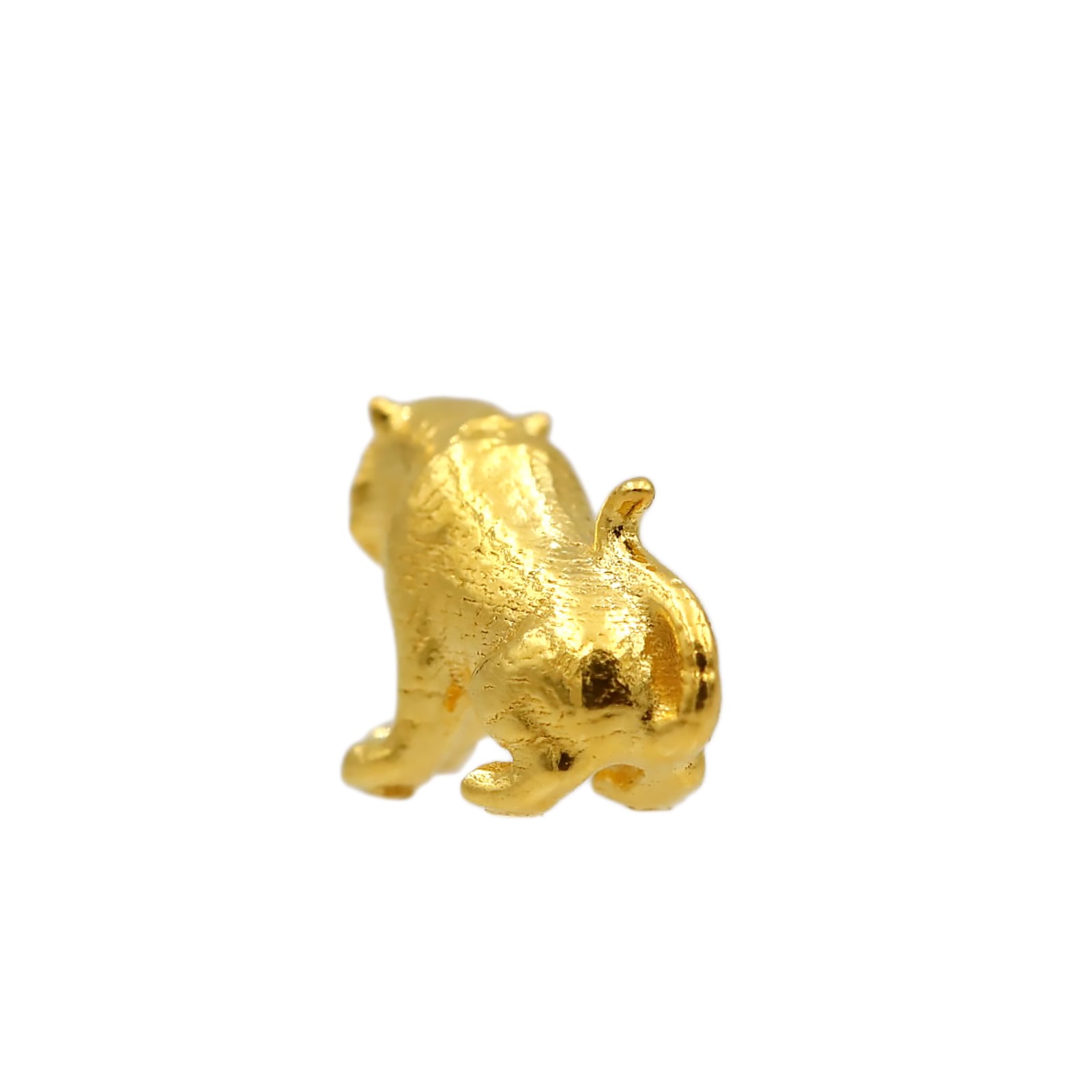 虎縞の精緻な刻み 体表に走る縞模様を細かく彫り込み、純金の光沢が縞の凹凸で陰影を生み出す美しい仕上がり。