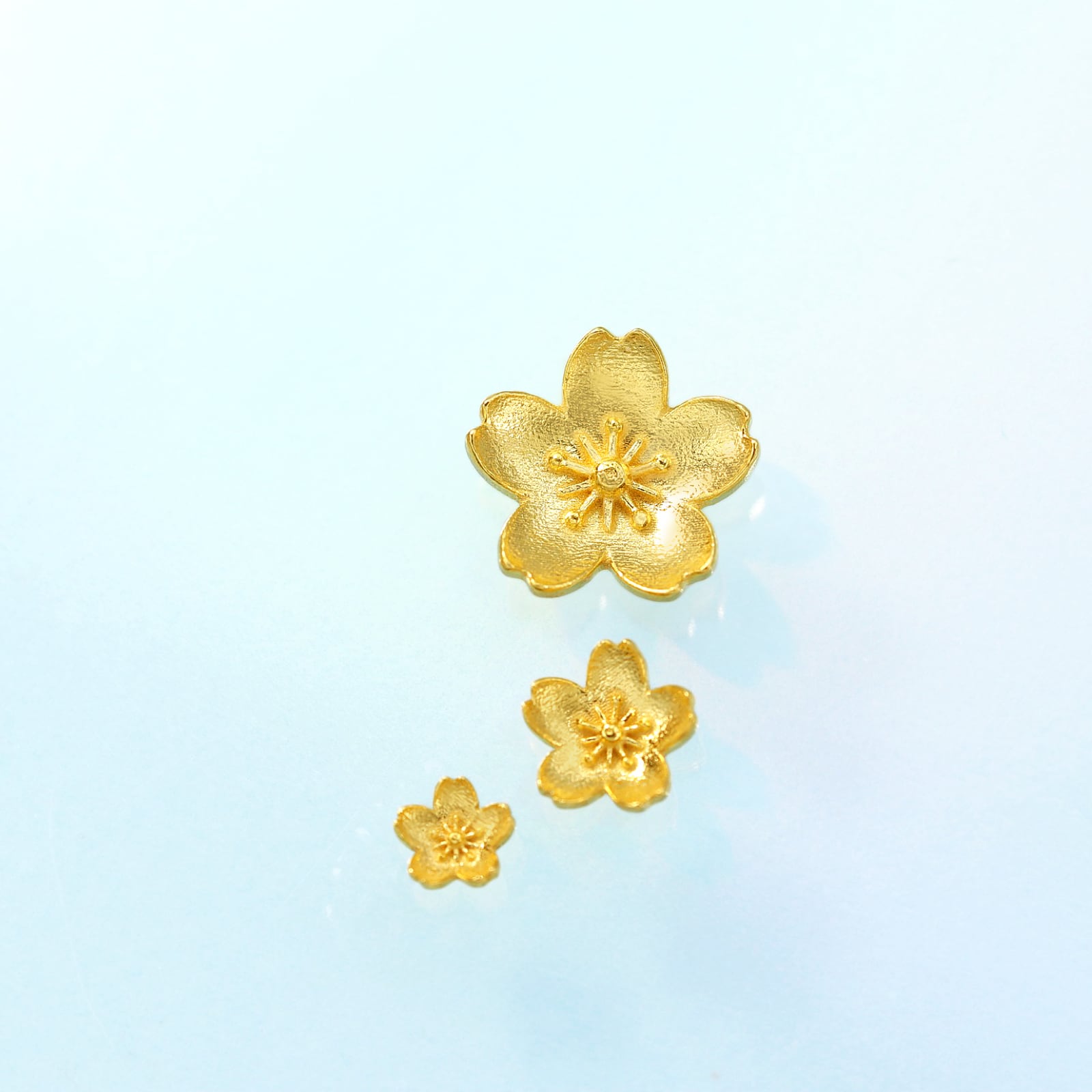 注意点 純金素材は、K18などに比べて柔らかい為、特に繊細な花びら部分は、衝撃や手の力を加えると変形する可能性があります。取り扱いには十分ご注意下さいませ。
