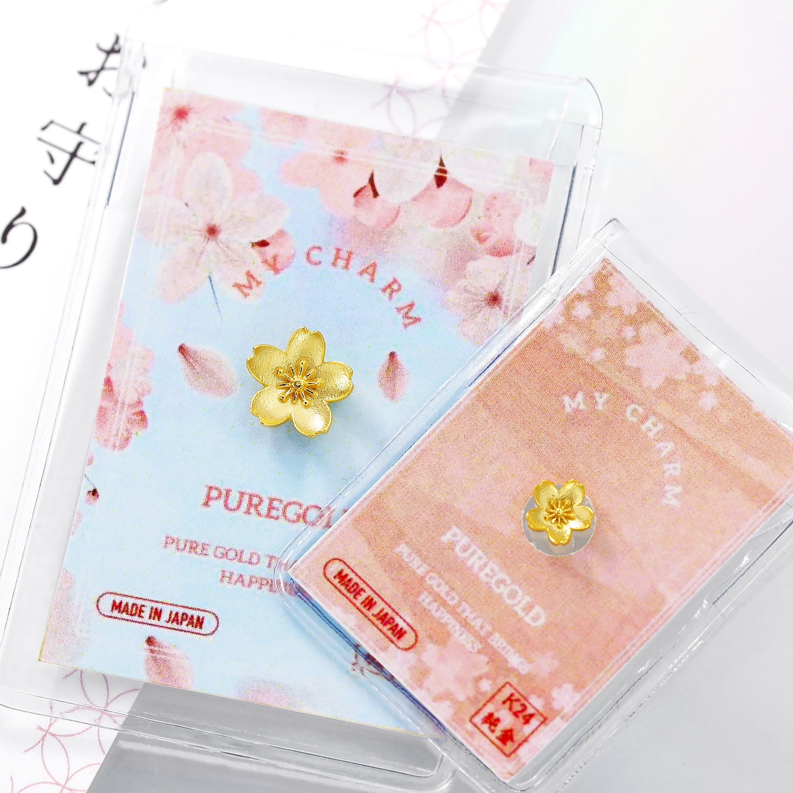 純金素材は、K18などに比べて柔らかい為、特に繊細な花びら部分は、衝撃や手の力を加えると変形する可能性があります。取り扱いには十分ご注意下さいませ。