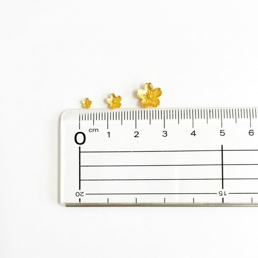 注意点 純金素材は、K18などに比べて柔らかい為、特に繊細な花びら部分は、衝撃や手の力を加えると変形する可能性があります。取り扱いには十分ご注意下さいませ。