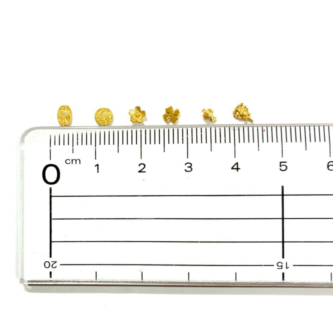 純金素材は、K18などに比べて柔らかい為、特に繊細なデザインの部分は、衝撃や手の力を加えると変形する可能性があります。取り扱いには十分ご注意下さいませ。