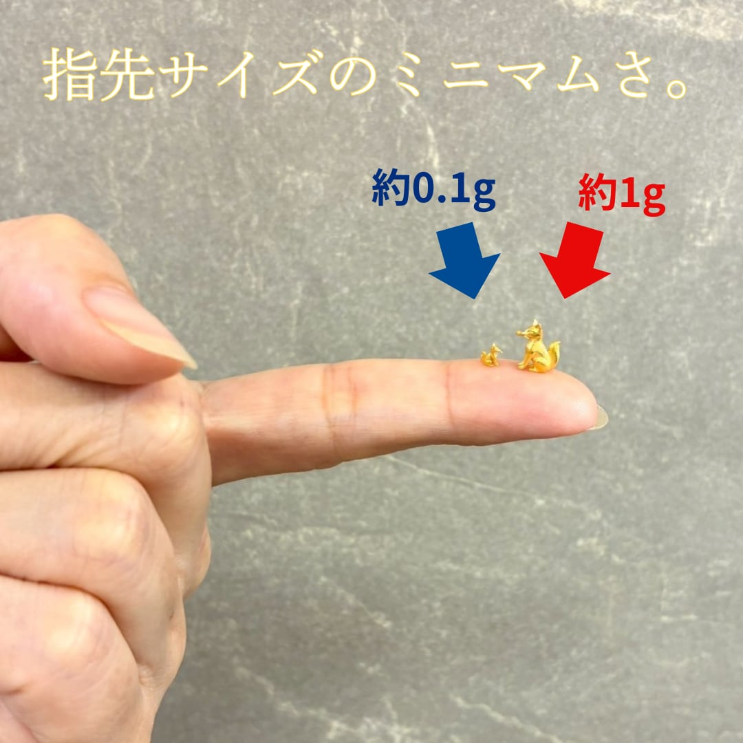 稲荷の使いとして親しまれる狐に捧げる、縁起のよいお供え物「油揚げ」を、純金で指先サイズに仕立てた特別な一品です。
