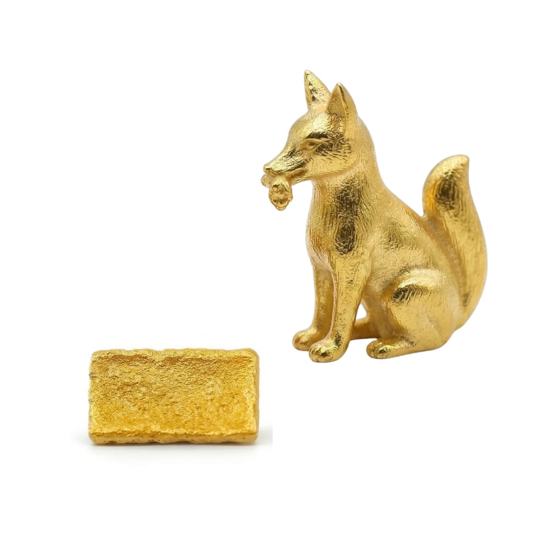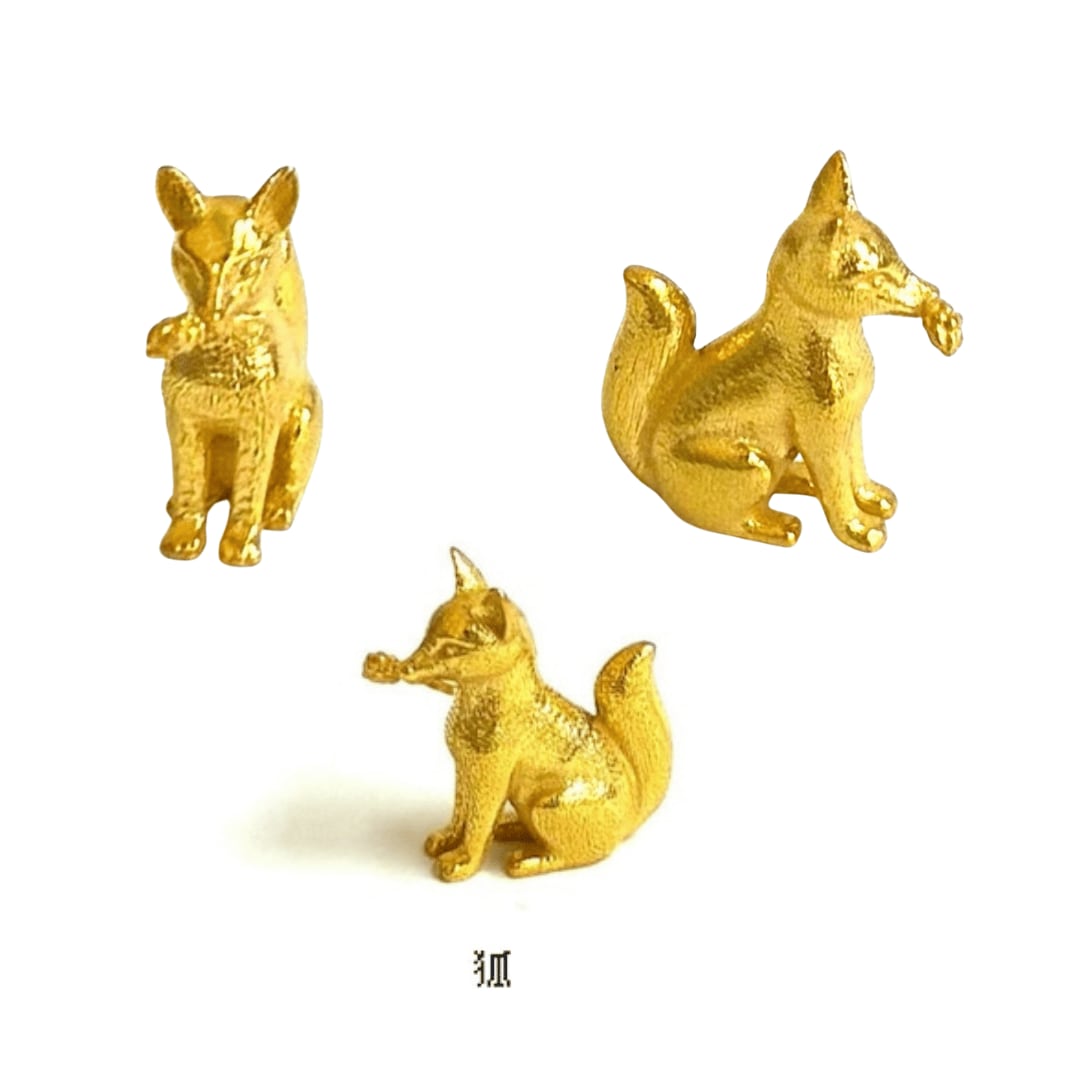 純金 『狐(きつね)』・『油揚げ(あぶらあげ)』セット モチーフ 約1g ×2個 ※額縁ケース(1個)付き【JUNGOLD】【狐:RNP00917】