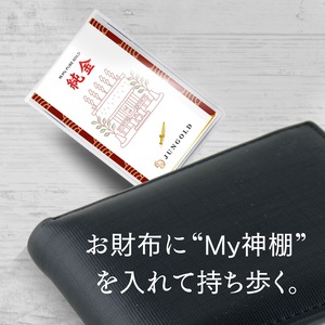 お財布に忍ばせたり、神棚に飾ったり——気軽に楽しめる新しい純金のカタチです。