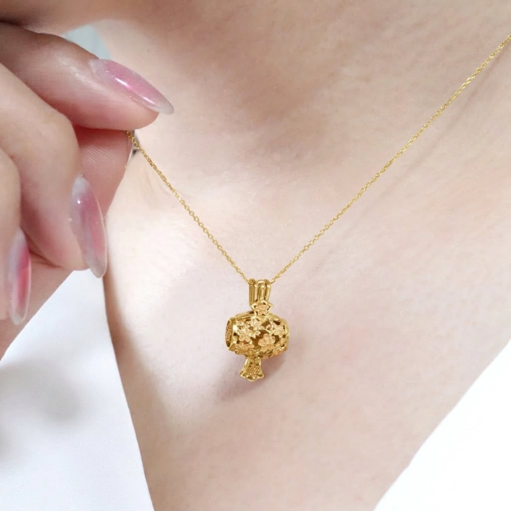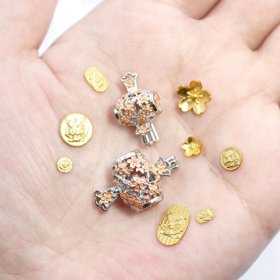 かごペンダント『小槌&桜の花びら』モチーフ (小) K18イエローゴールド製 ※ペンダントトップのみ