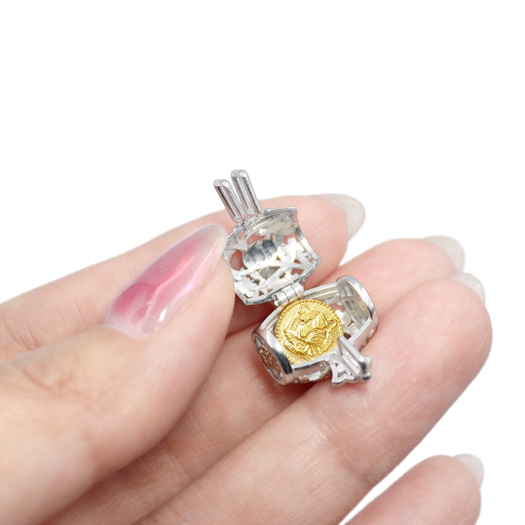 かごペンダント『小槌&桜の花びら』モチーフ(小) シルバー925製 ※ペンダントトップのみ
