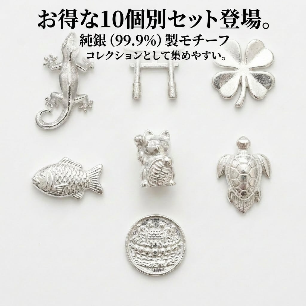 ・お好きなデザインの純銀(99.9%)製モチーフ 10個 (各約0.5〜0.6g)