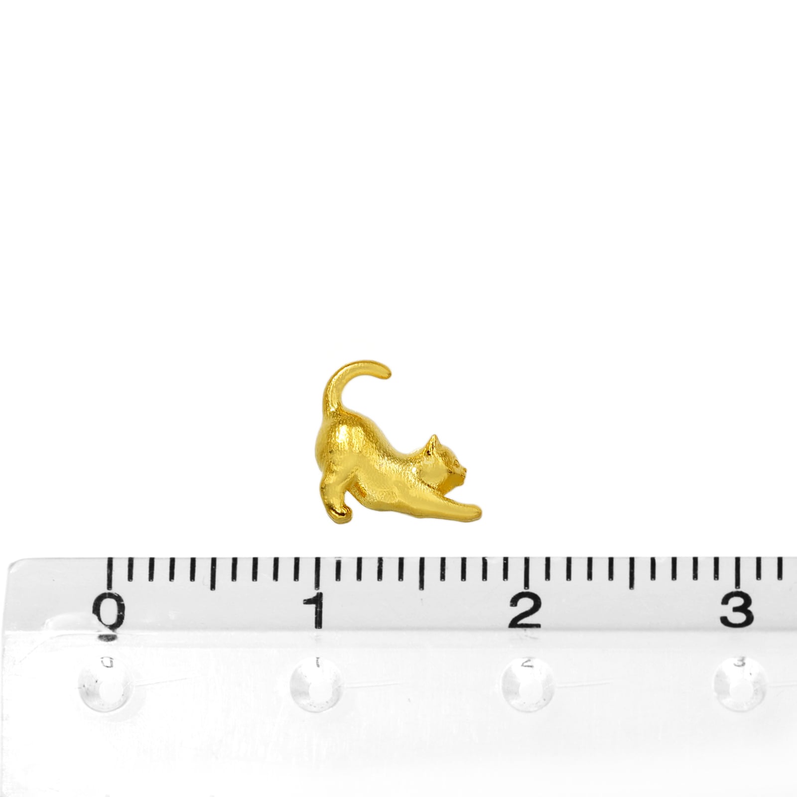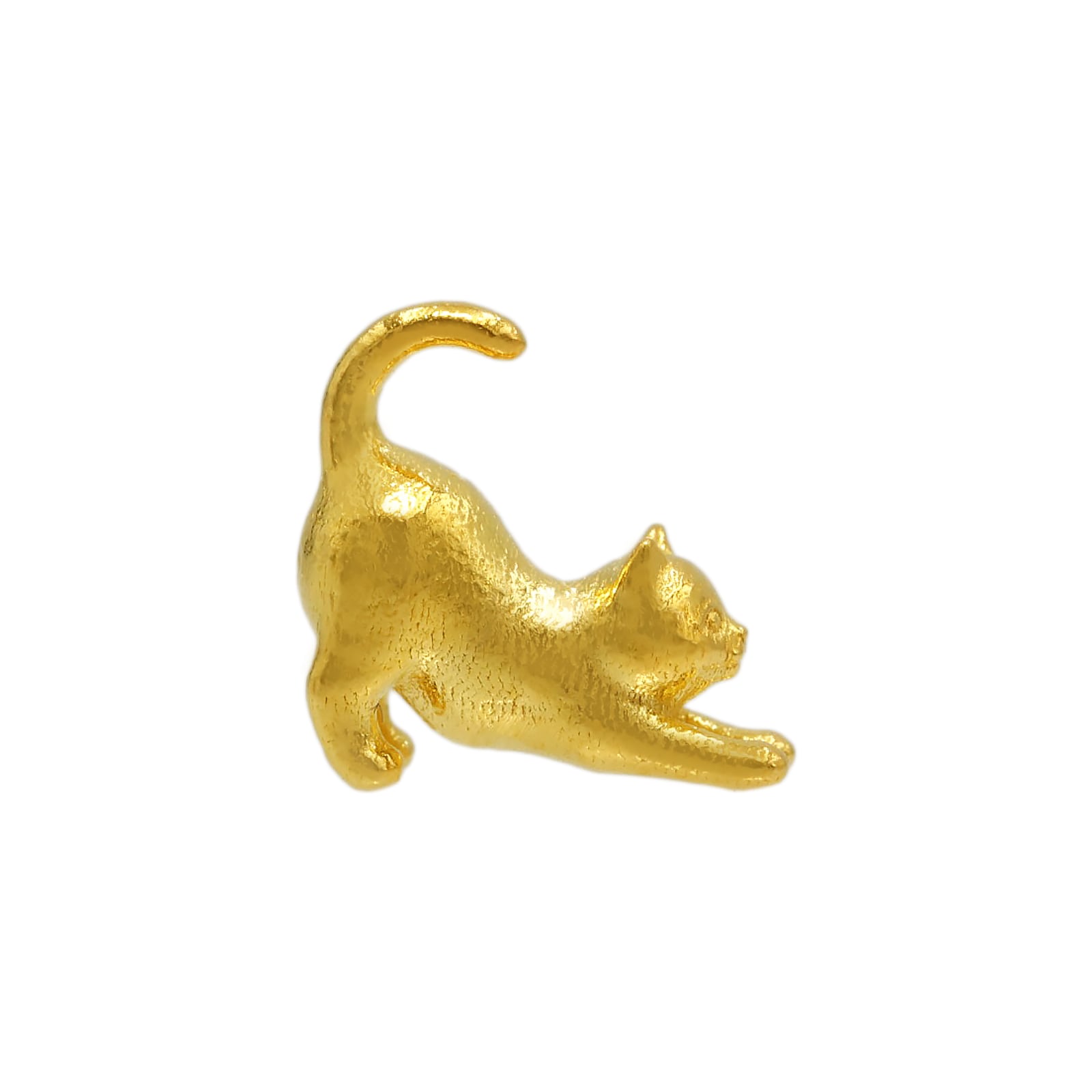 猫が前足をぐーっと伸ばし、背中を反らせる「背伸び」の瞬間。猫好きなら誰もが目を細めてしまう、あの愛おしい一瞬を、混じりけのない純金(K24)で形にしました。