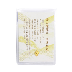 50×70mmのビニールケースに入った御守り。中の純金モチーフは取り出して見る事ができます。