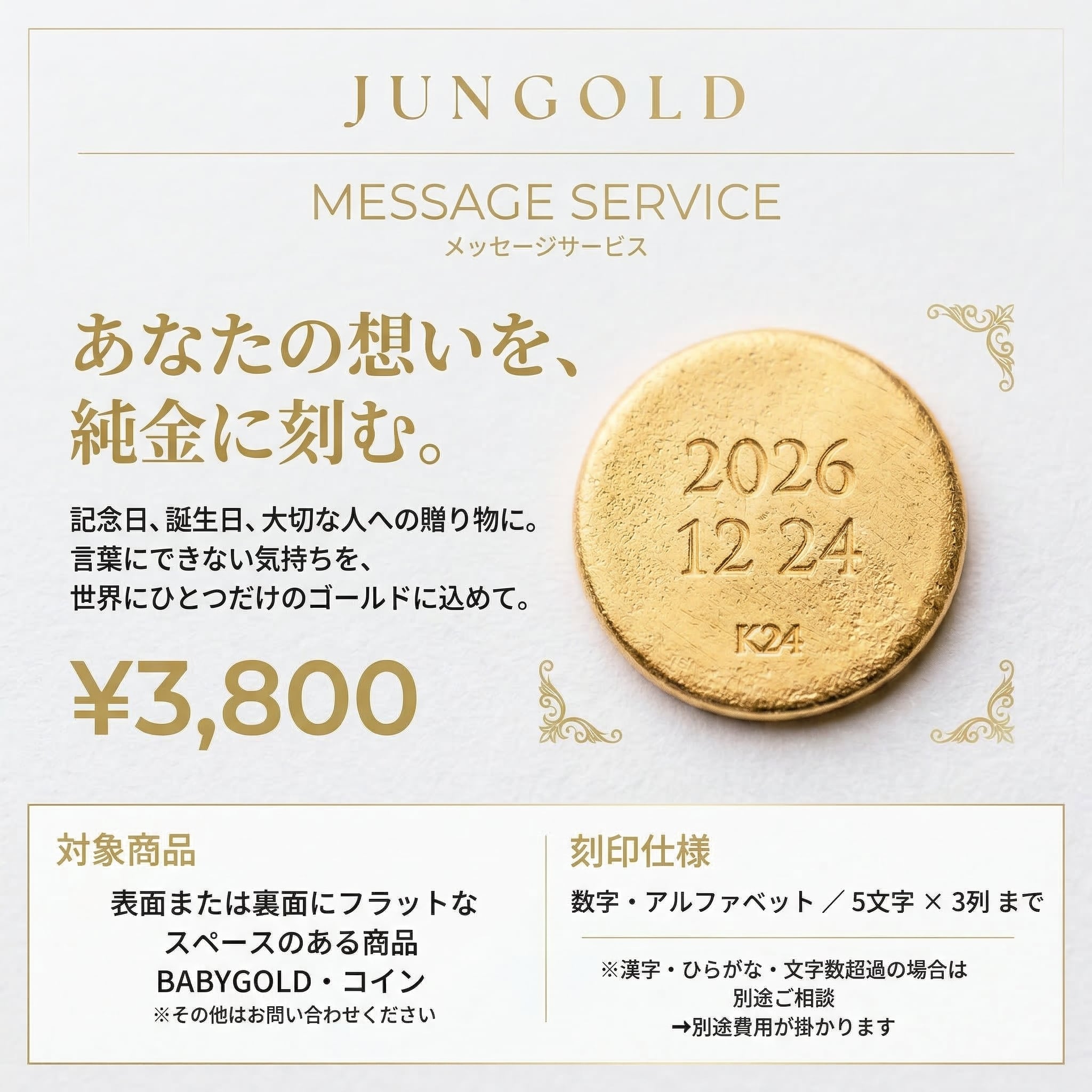人生の節目に、「かけがえのない想い」を“純金”にのせて贈ってみませんか?