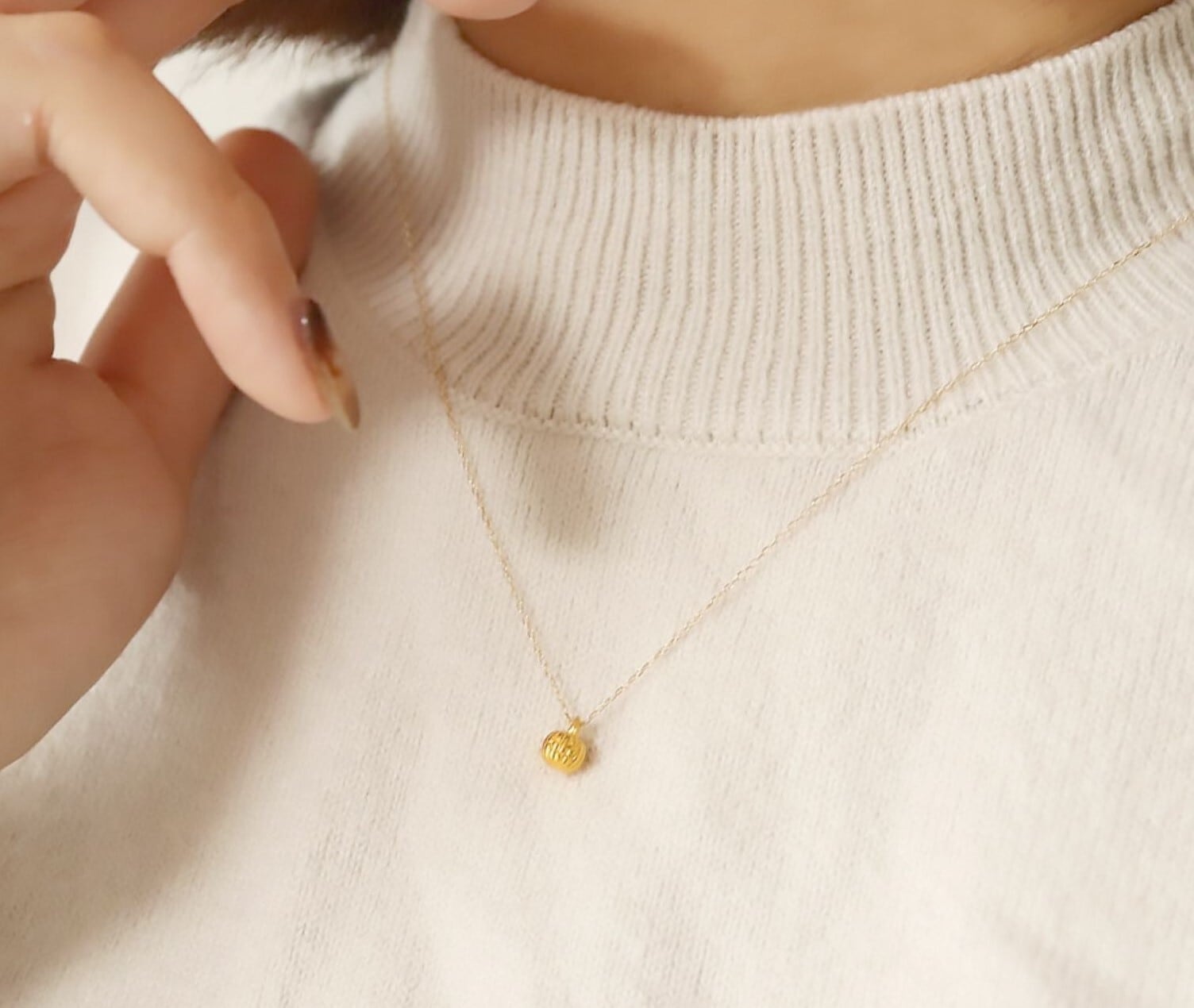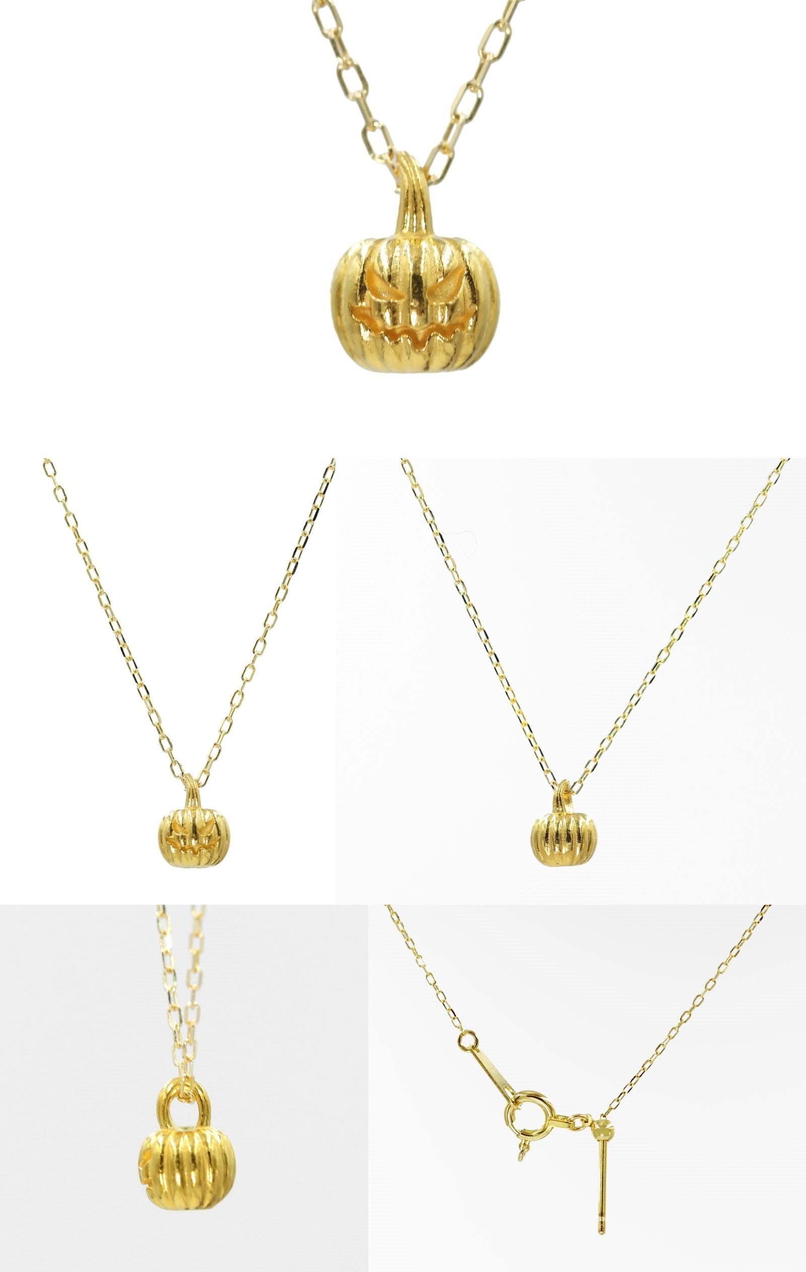 純金ハロウィン『かぼちゃ』モチーフペンダント約1g・ K18チェーン付き*45㎝スライド小豆チェーン 【JUNGOLD】