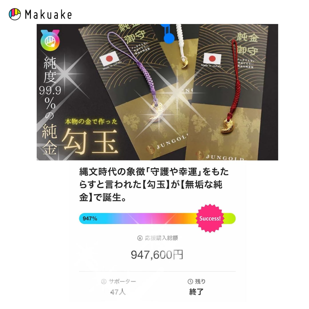 縄文時代の象徴「守護や幸運」をもたらすと言われた【勾玉】が【無垢な純金】で誕生。